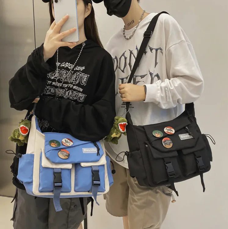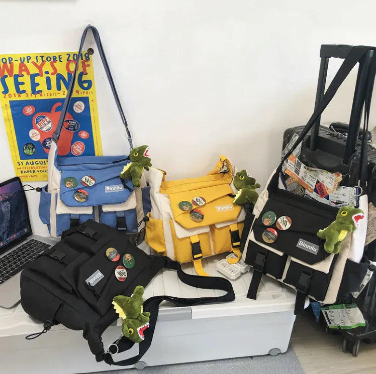 Elevate your everyday style with this Fashion Minimalist Nylon Canvas Bag, designed to offer both practicality and a modern aesthetic. Featuring a chic color-blocking design, this bag combines bold contrasts to make a fashionable statement. Made from durable nylon, it’s perfect for daily use and can easily carry your essentials. The bag comes in four stylish color options: Black, Yellow with White, Blue with White, and Black with White. Plus, it includes a trendy pendant for a touch of extra flair.