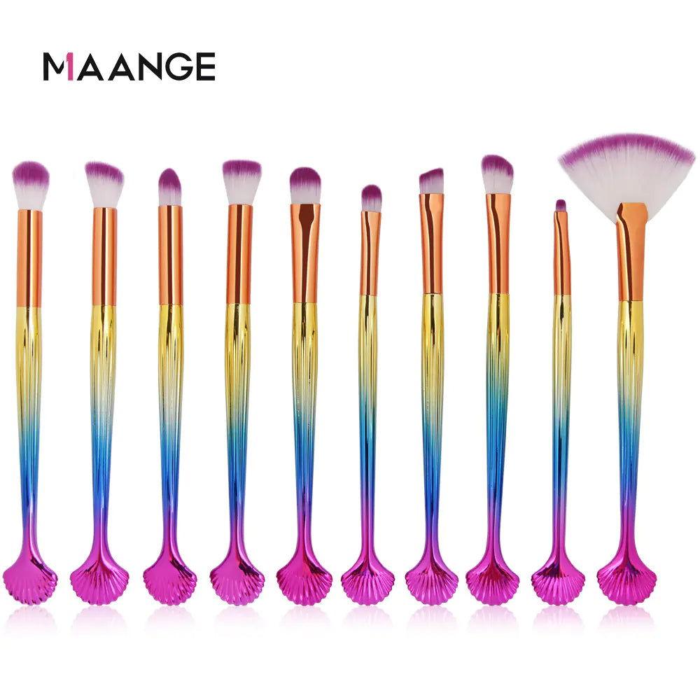 10-Piece Shell Makeup Brush Set - Beauty Tools