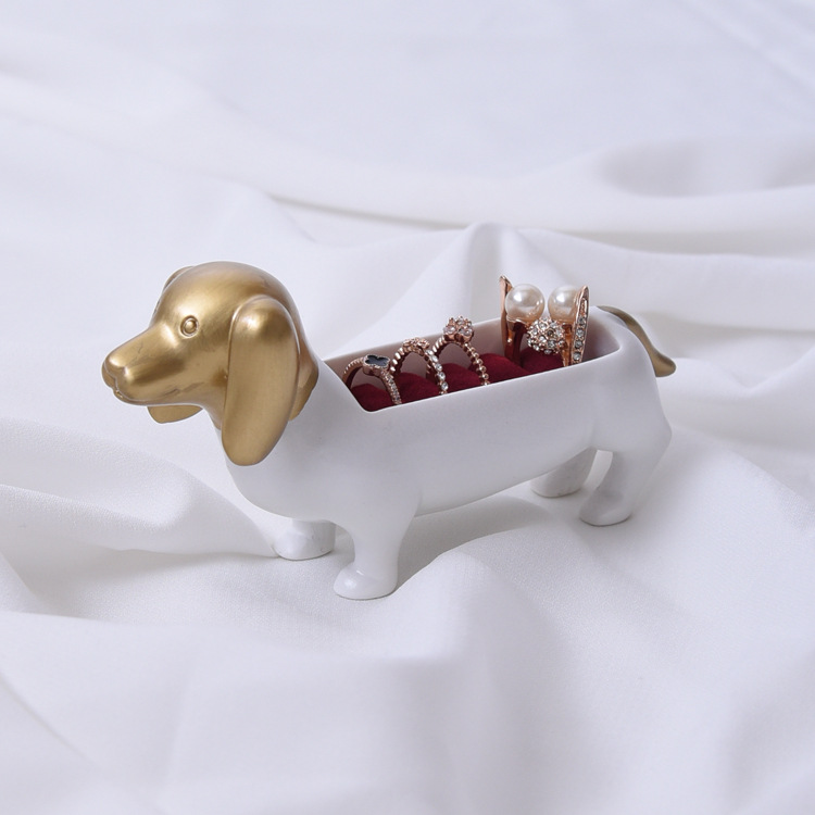 Introducing the charming Dachshund Ring Jewelry Box, a delightful addition to your jewelry collection! Crafted from high-quality synthetic resin, this exquisite piece combines functionality with whimsy, making it a perfect decorative accent for any space.
