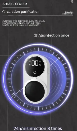 Combines cutting-edge technology with convenience to keep your toothbrushes clean and hygienic. Equipped with an intelligent sensor, the sanitizer effortlessly opens and closes with just a simple wave or touch, thanks to its motion-activated sensing lights. It uses scientifically designed cleaning methods to ensure your toothbrush stays free from germs and bacteria. The device also features intelligent cyclic purification, automatically circulating every 3 hours to provide continuous, round-the-clock protection for your toothbrush. With this sanitizer, you can trust that your toothbrush will remain clean and safe, providing peace of mind and enhancing your oral hygiene routine.
