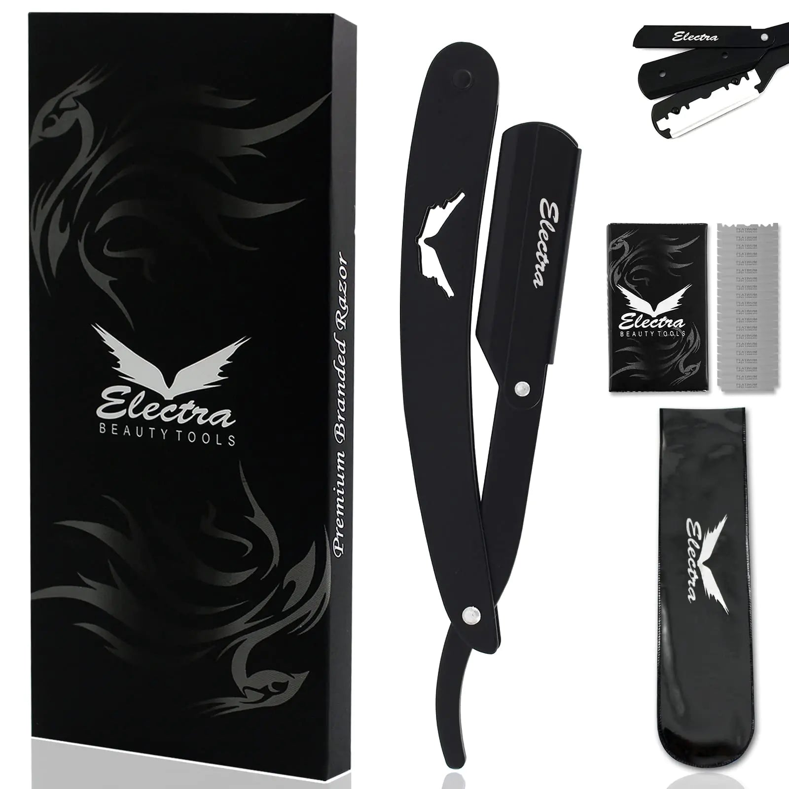 Straight Razor Professional Cut throat Premium Quality Stainless Steel Shaving Razor,10 Double Edge Blades (Black)