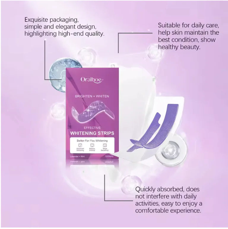 These whitening and stain removal tooth patches are infused with a blend of effective ingredients like glycerin, hydrogen peroxide, and lavender extract for a fresh, clean feel. Each strip helps remove stains while promoting a brighter smile. The package contains seven strips, perfect for easy and convenient use.