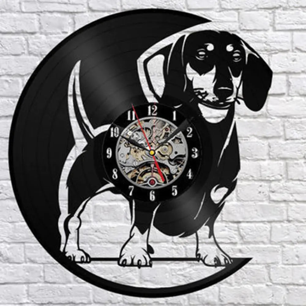 Cute Pet Dog Living Room Clock - Vintage Vinyl Design