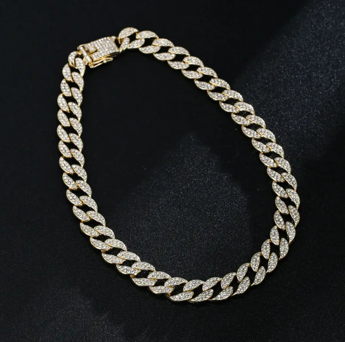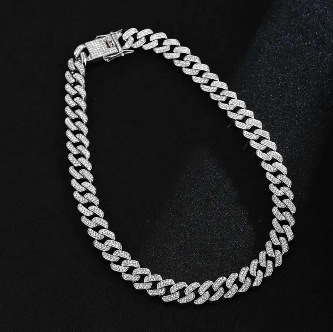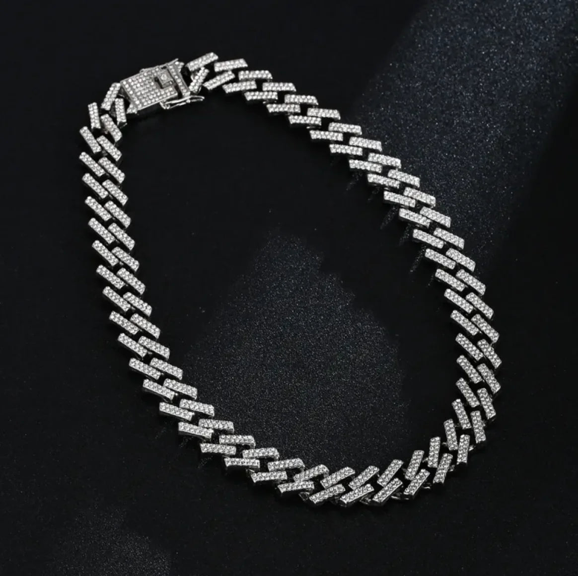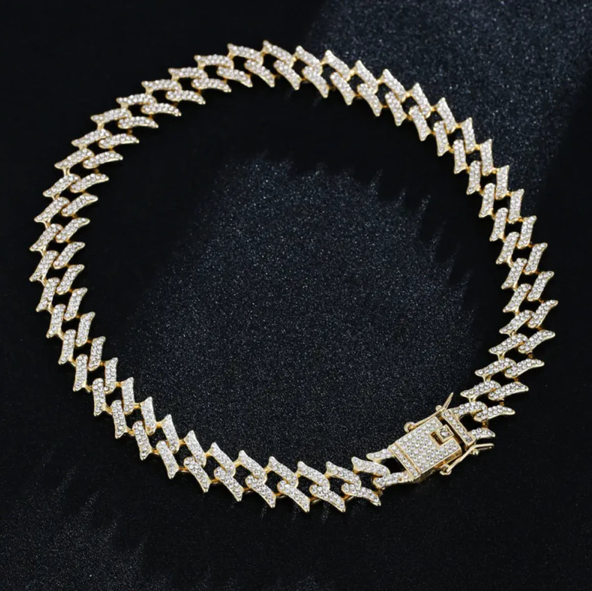 Make a bold fashion statement with this stunning full diamond inlaid necklace. Designed for trendsetters, this eye-catching piece features sparkling diamonds that cover the entire necklace, giving it a luxurious and glamorous appeal. Perfect for special occasions or elevating everyday outfits, this necklace adds a touch of sophistication and sparkle to any look.
