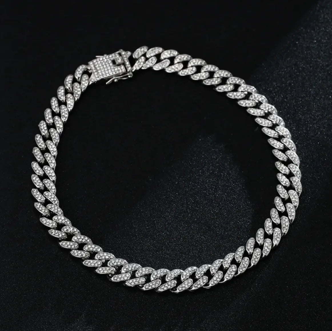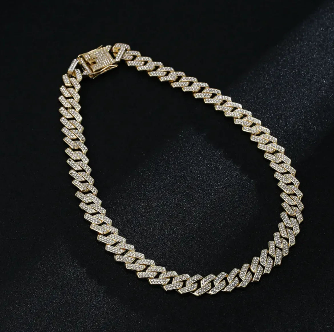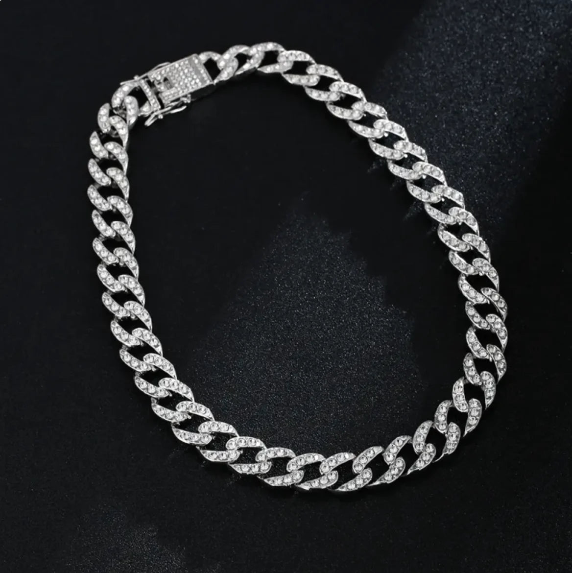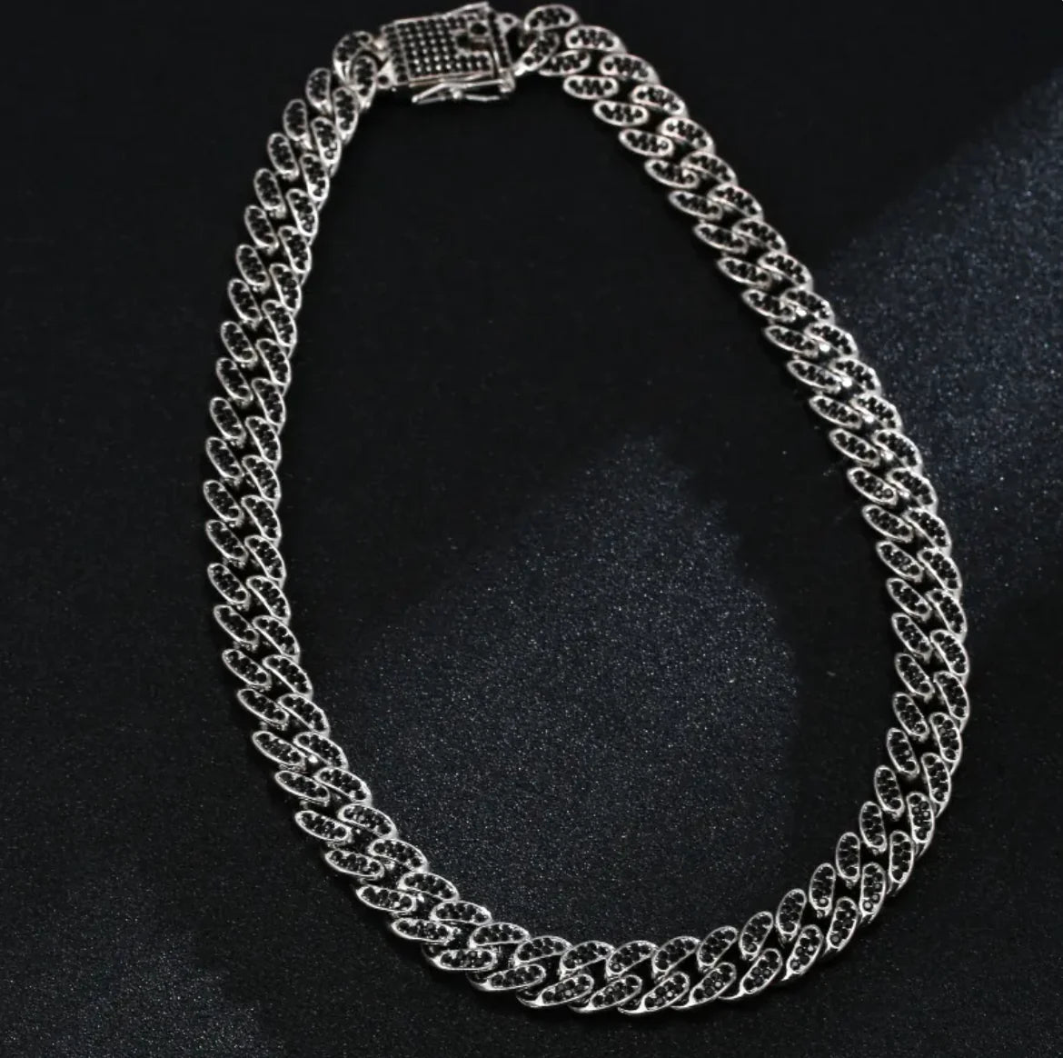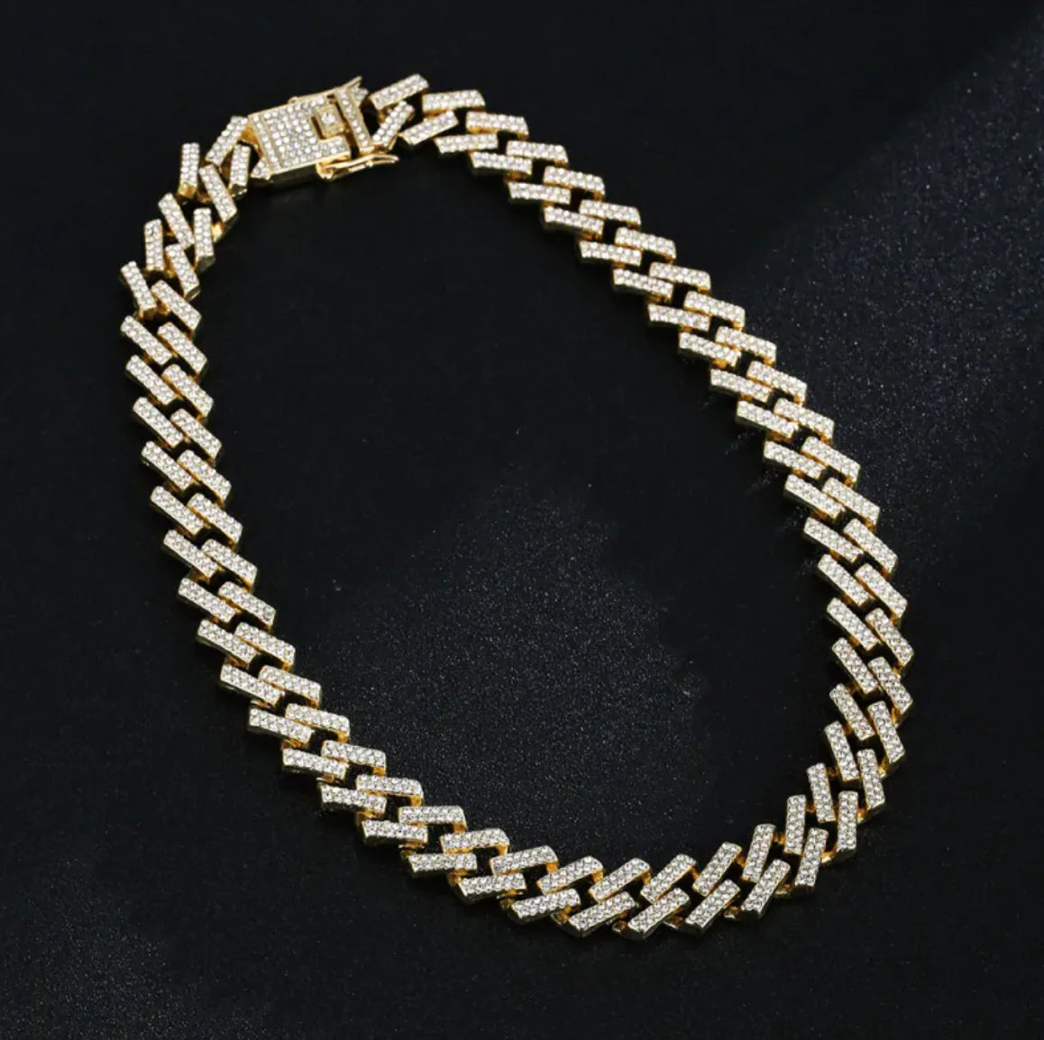Make a bold fashion statement with this stunning full diamond inlaid necklace. Designed for trendsetters, this eye-catching piece features sparkling diamonds that cover the entire necklace, giving it a luxurious and glamorous appeal. Perfect for special occasions or elevating everyday outfits, this necklace adds a touch of sophistication and sparkle to any look.