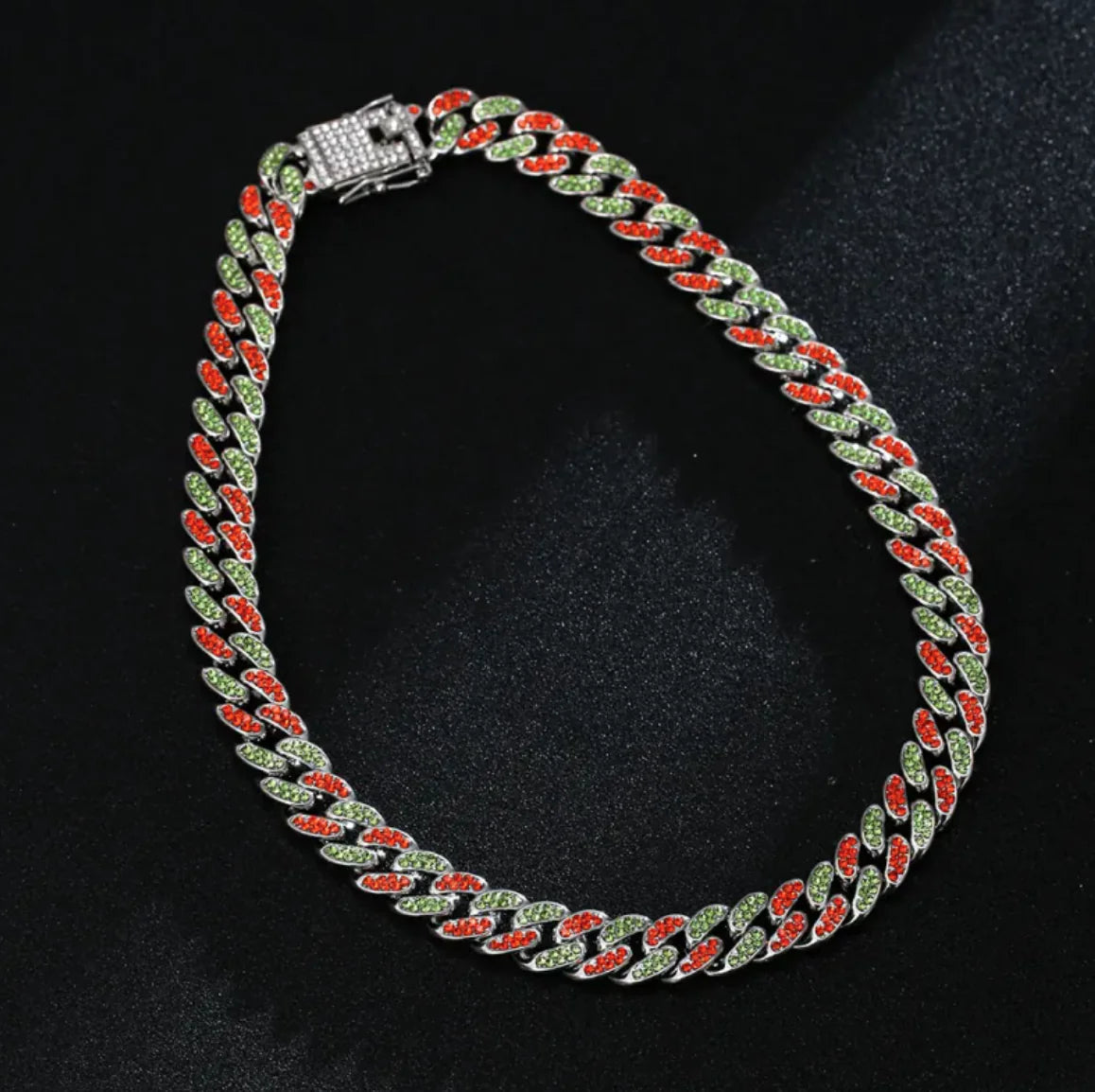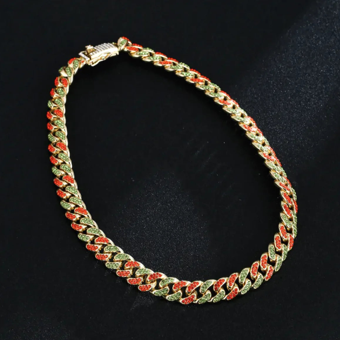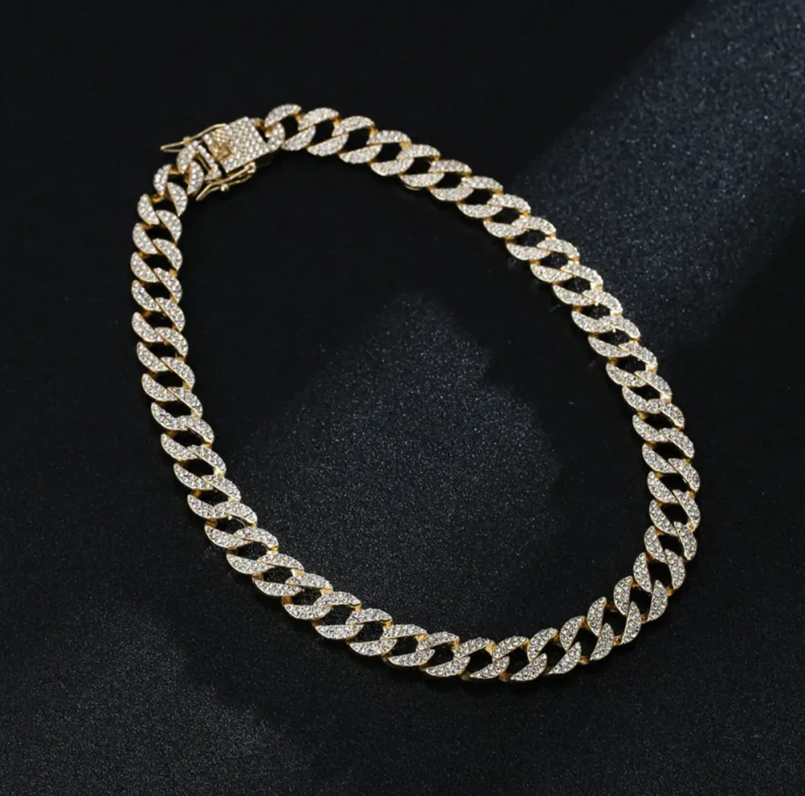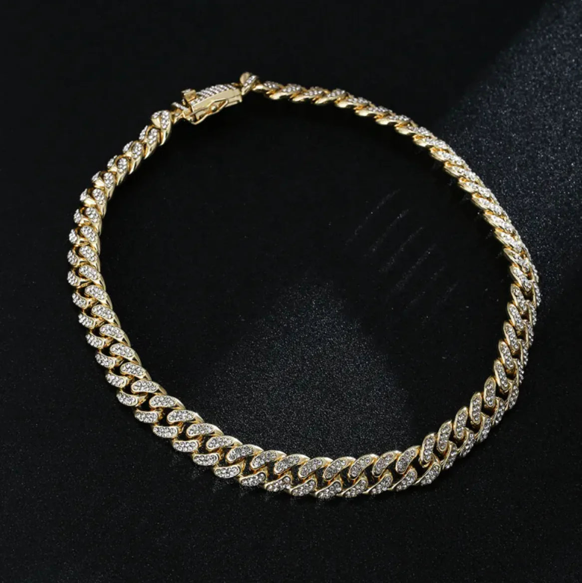 Make a bold fashion statement with this stunning full diamond inlaid necklace. Designed for trendsetters, this eye-catching piece features sparkling diamonds that cover the entire necklace, giving it a luxurious and glamorous appeal. Perfect for special occasions or elevating everyday outfits, this necklace adds a touch of sophistication and sparkle to any look.