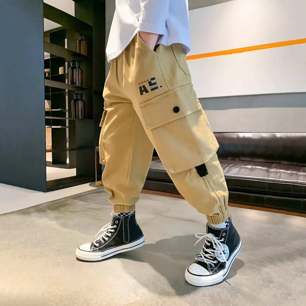 Boys' Pants in Action Stylish Boys' Pants Comfortable Boys' Overalls Casual Boys' Pants Khaki and Black Options