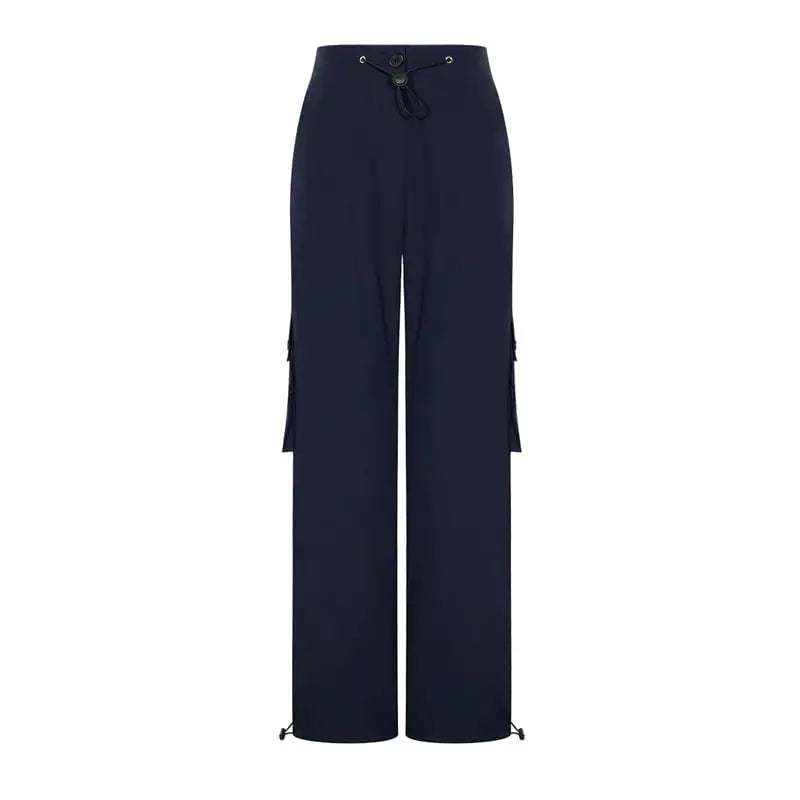 Available in a classic navy blue, these pants feature trendy splicing elements, adding a touch of contemporary flair to your outfit. Pair them with your favorite top and shoes for a chic look that effortlessly transitions from day to night.