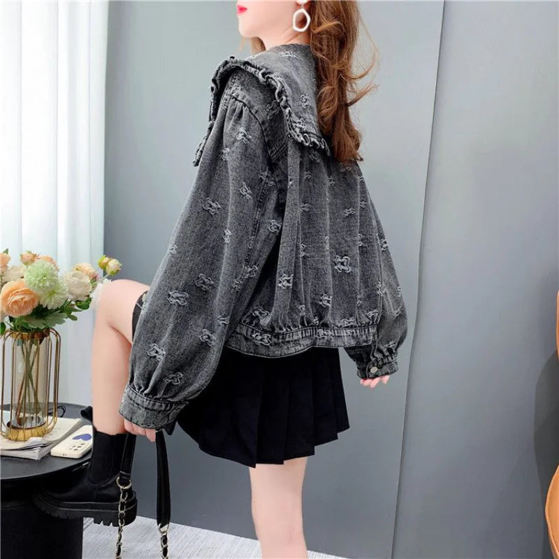 Women's Jean Jacket with Doll Collar Frugal Finds Galore