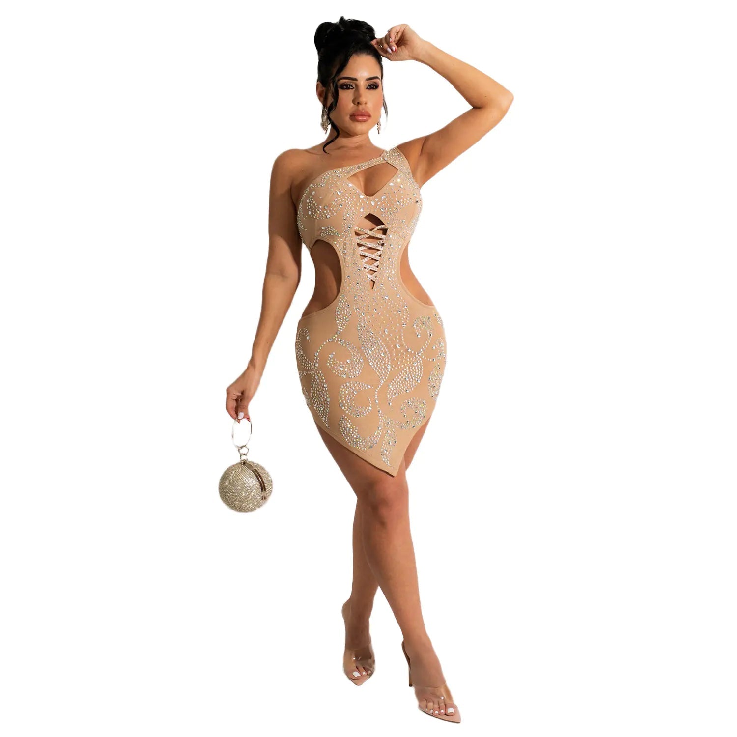 Oblique Shoulder Rhinestone Irregular Skirt for Women