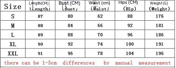With a range of sizes from S to 3XL, finding your ideal fit has never been easier. Whether you're looking for a snug fit or a more relaxed silhouette, our size recommendations ensure you look fabulous at any weight.