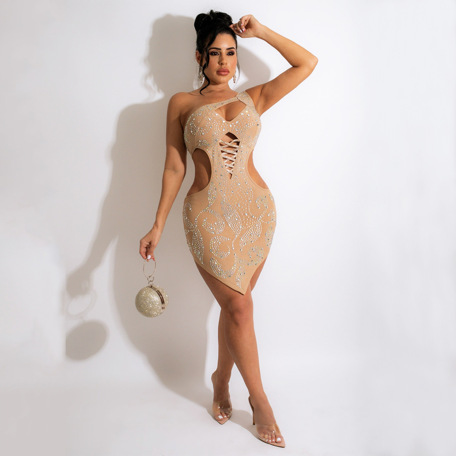 Oblique Shoulder Rhinestone Irregular Skirt for Women Frugal Finds Galore