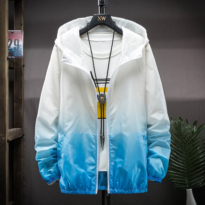 Featuring a trendy gradient pattern, this coat comes in various eye-catching color combinations, including dark blue + orange, dark blue + light blue, black + purple, black + white, and light blue + white. Whether you're hiking, fishing, or simply enjoying a sunny day, you can choose the perfect style to suit your mood!