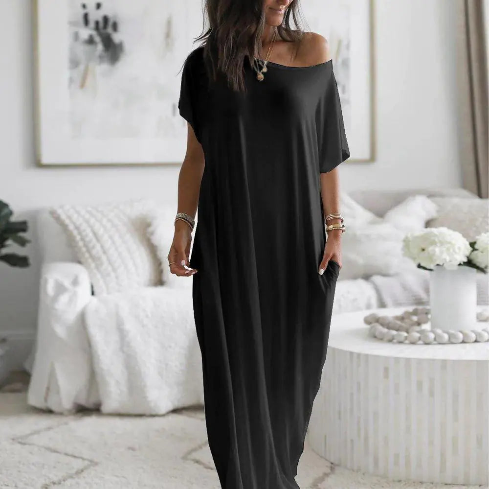 Discover ultimate comfort with our Elegant Home wear Maxi Dress. Available in Black, Dark Gray, and White, and in sizes S, M, L, XL, XXL. Made from a soft cotton blend, it's perfect for a relaxed day at home.